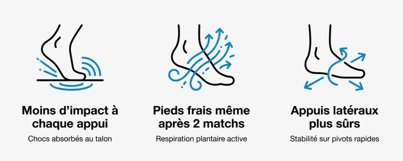 Fini les douleurs aux pieds, genoux ou dos. Profitez pleinement de chaque match, du premier au dernier point.