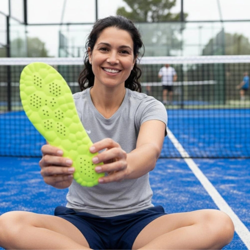 Imaginez un match où chaque pivot, chaque smash est soutenu. Nos semelles Vitalyx absorbent l'impact, protégeant vos articulations pour que vous puissiez vous concentrer sur votre jeu, pas sur la douleur. Retrouvez le plaisir du padel.